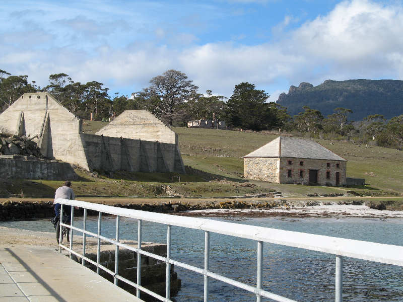 We left the Louisville Resort at Orford at about 9.45am and by 10.10am we were unloading our gear at the Darlington jetty. P & WS staff were readily on hand to remind us about washing off our bikes to guard against Phytophthera disease and to let us know that the only camping near Darlington was going to cost us $12 per tent per night for the privilege. Fortunately we had only one tent, Matthew's Macpac Olympus, but it still hurt as the amenities provided were minimal. I thought perhaps Federal Hotels had taken over running the Island! I think we were the only visitors to Maria at that time.