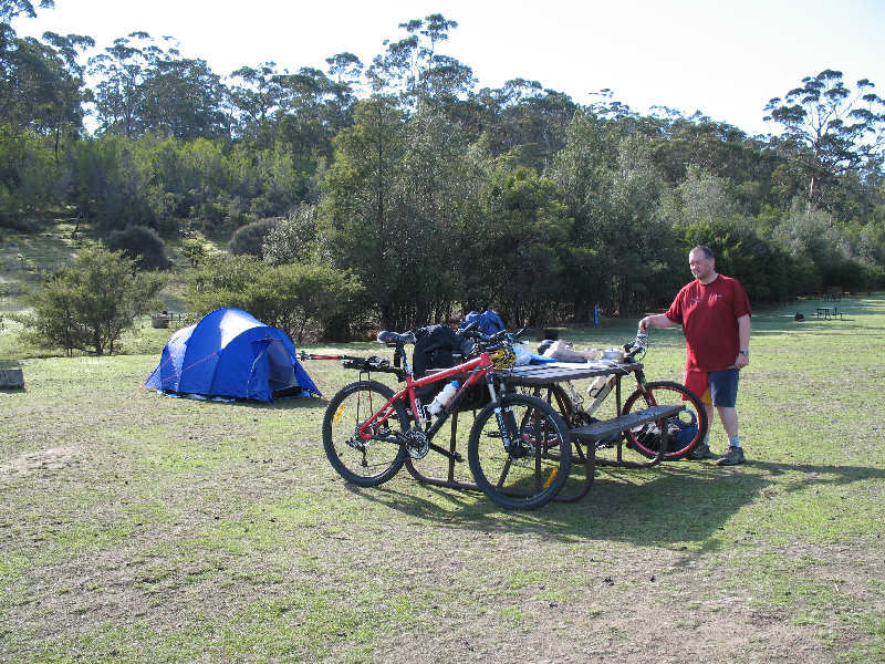 Matthew discovered that the hot showers were actually working and enjoyed the luxury of washing off the dirt and sweat of the past three days. (When we had checked out the shower situation on Monday there was a sign on the door to the effect that the showers were closed.) He recommended that I would probably enjoy a shower as well so, armed with my 2 x $1 coins for a 4-minute shower, I rode over to the toilet block. He was right - it was well worth the money.