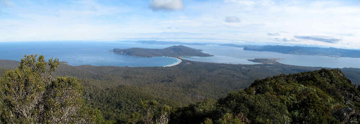 Some scrambling and rock-hopping with a bit of care and we were soon standing on the peak, enjoying magnificent views of the entire south Maria Island and wonderful sea views along the coast of mainland Tasmania.