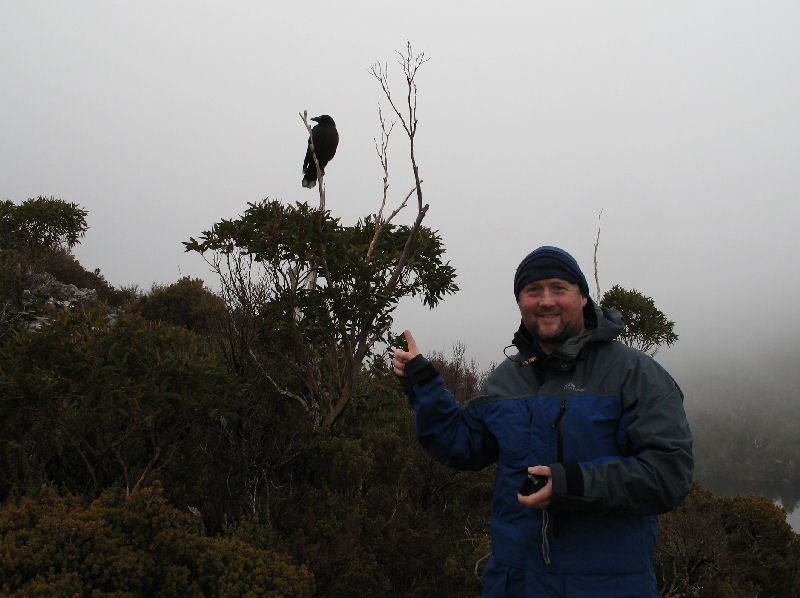 Our packs were OK when we got back to them and the walk continued downhill for another hour until we reached Kia Ora Hut. Just after we arrived Brendan also turned up, having decided against staying up on Mt Ossa overnight. We were relieved that he was safe and well.