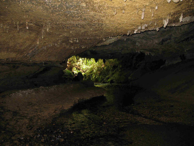Although I was a bit reluctant to go into the cave (no experience, no adequate clothing, no hard hat etc) the recent dry spell indicated that the risk of a sudden increase in the height of Damper Creek, as it exited the cave, was not great. With cameras at the ready we walked about 50m into the cave and were both amazed at the stalactites and other formations all around us. This was quite an unexpected experience for me, and one I won't forget.