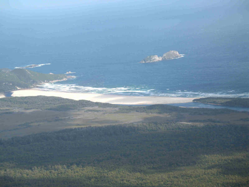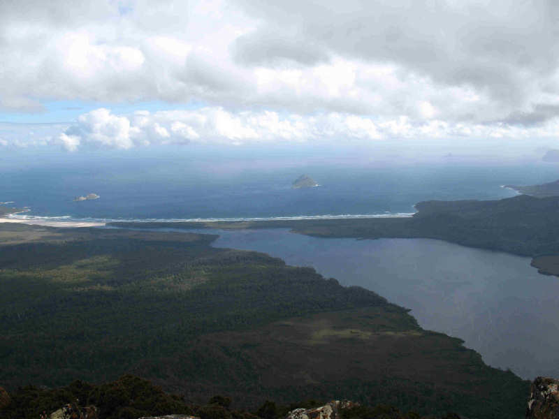 As we were not planning to walk today we had a leisurely start, with a cup of tea at about 7.30am. Prior to this I had walked out about 50m into the lagoon to have a look at Precipitous Bluff over the tree tops. It was clear at that time but clouds above the top indicated that it may not be clear for very long.