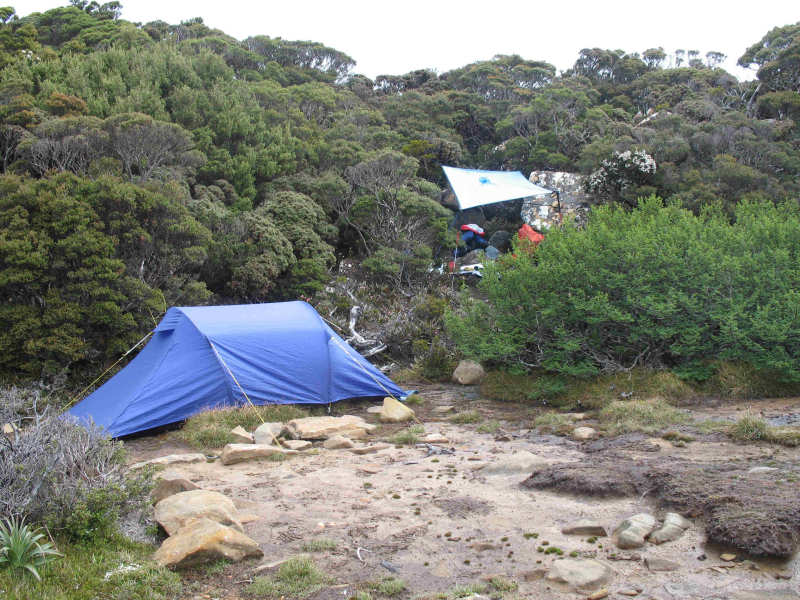 Our decision not to tackle Precipitous Bluff today was justified because, during the afternoon, a hideous westerly wind sprang up, bringing with it rain that was almost horizontal. We quickly rearranged the fly sheet downwards on the westerly side to give us a bit more protection. After about two hours the rain passed but the wind remained, with a corresponding drop in temperature to possibly the low teens.