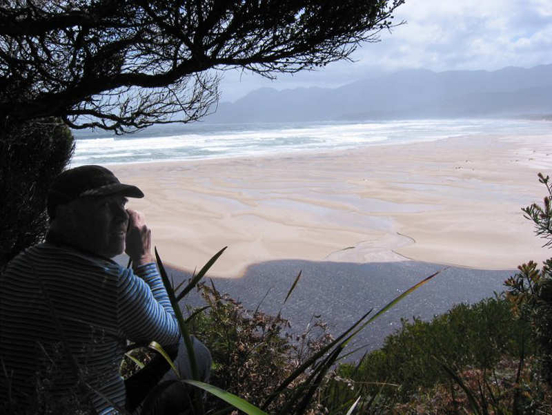 At the coast we met up with a group of four walkers at the first campsite (west Cox Bight). They had done a couple of circuit trips and were flying out on Thursday 7/11/02.