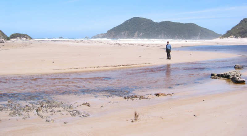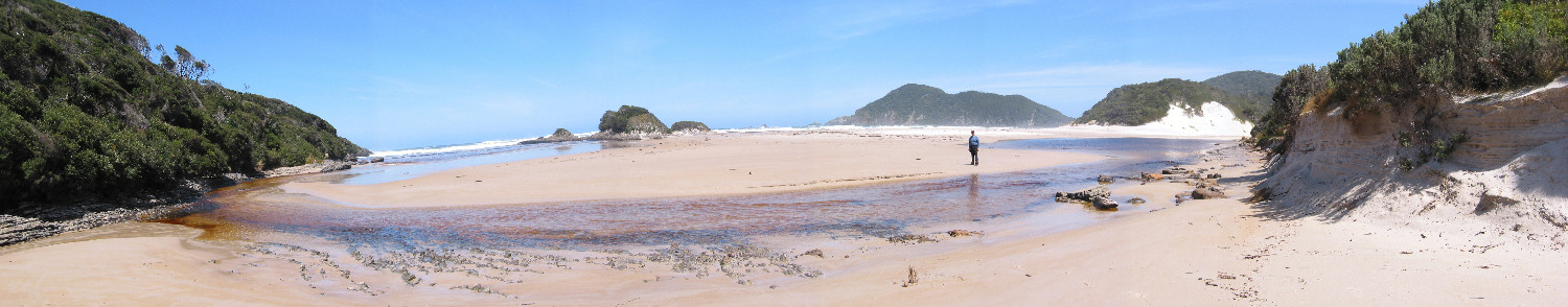 We forded a couple of creeks and snuck around a headland (that could be difficult in heavy seas or high tide conditions) and soon arrived at this campsite. Beautiful, sheltered spot with tea trees around us.