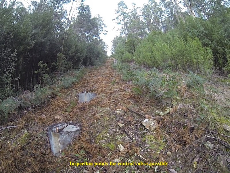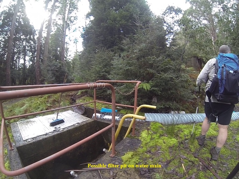 There were several structures that we encountered on the way up, such as various stop valves, possible surge tanks and a water filter for the water supply. At one point there was a break in the pipe, with a resultant escape of water that formed a mini-creek down the track.