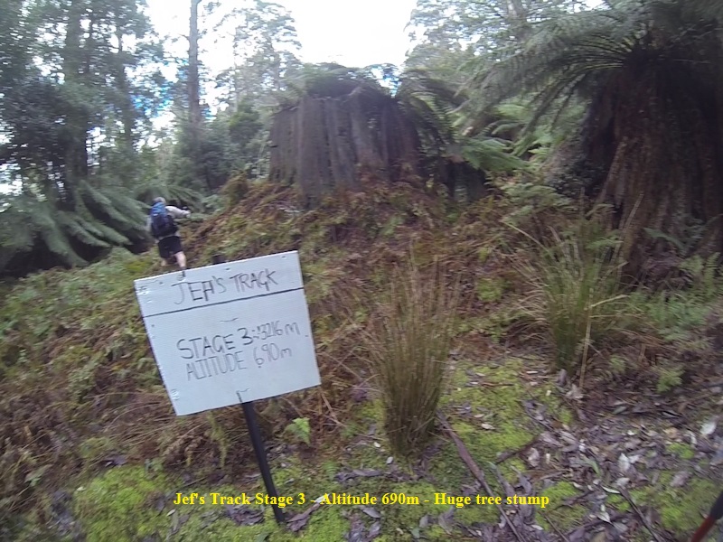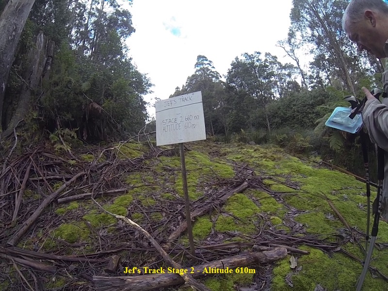 At the point where we saw the "Jef's Track Stage 3" sign, indicating there was over 3kms (at least) to go and 400m vertical distance and the power lines and poles stretched up into the far distance ahead of us (and I had called out "Holy Sh_t" or something similar), Matthew suggested it would be a good idea to have a rest stop at each power pole. I readily agreed.