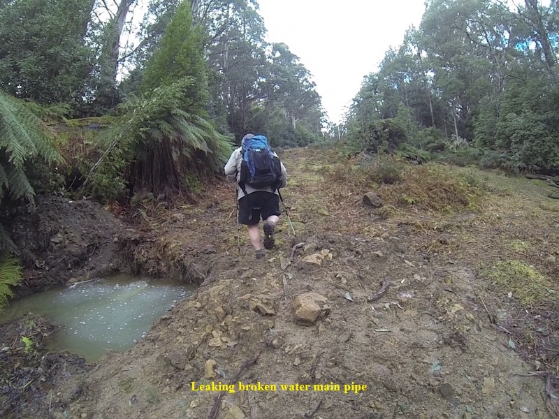 As well as walking under the power lines we were also following the route of a water main. We assumed that it was the main water supply line for Maydena, but we could have been mistaken about that.