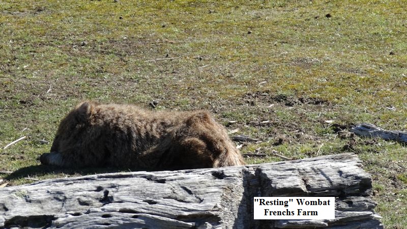 Once we had changed out of our walking gear, we made ourselves a cup of tea, accompanied by Vita-Weat biscuits, cheese and Vegemite. As we relaxed during the afternoon Matthew saw and pointed out a wombat with a baby in its rear-facing pouch, with a paw out of the pouch, as its mother wandered along munching on the short grass.