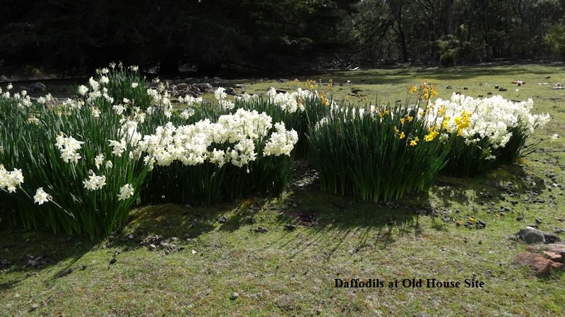 On the way back along the road, apart from some rest breaks, we detoured up a slight incline away from the road where a large clump of daffodils was in bloom. It seemed clear to us that this was a former house site but we had no idea whose property it might have been many years ago. There was an old chaff cutter quietly rusting away beneath a huge pine tree.