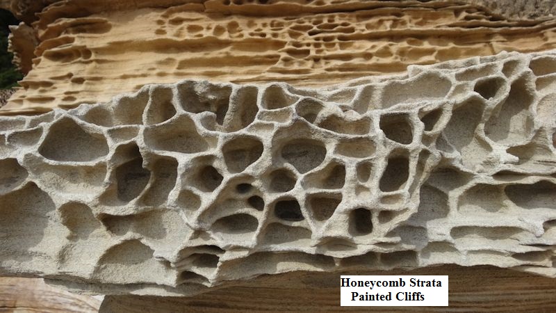 We began to see more day tourists as we drew closer to Darlington. A short walk to Painted Cliffs and this was the first time I had seen this particularly remarkable rock formation. I was fascinated by the honeycomb strata, the likes of which I had never seen before.