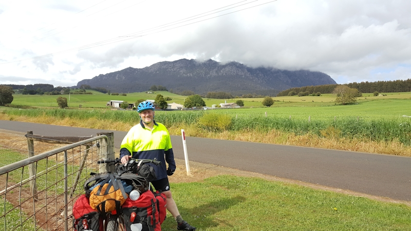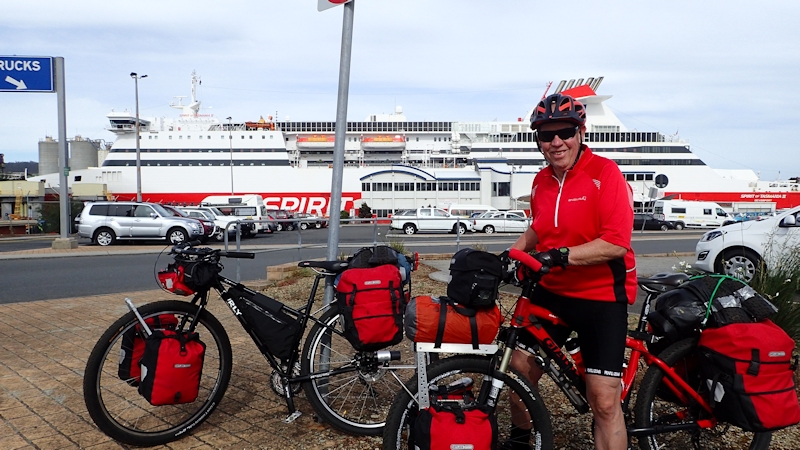 Matthew drove us to the Devonport Airport car park, where he intended leaving his car while we were away. This allowed us to set up our bikes with packed panniers etc with plenty of space around us. We were on the road by 8.30am and called past the terminal of the Spirit of Tasmania ferry, which was where the Tasmanian Trail actually commenced.