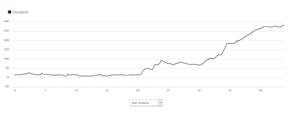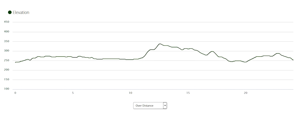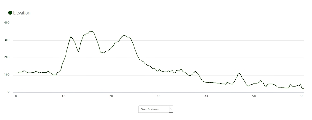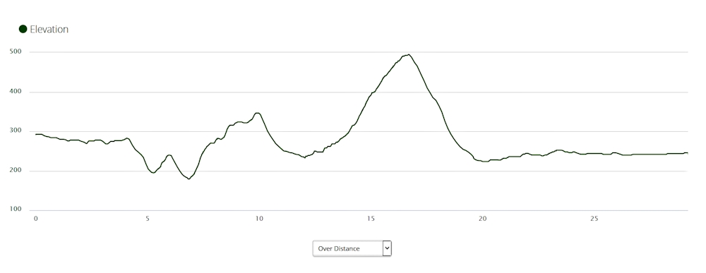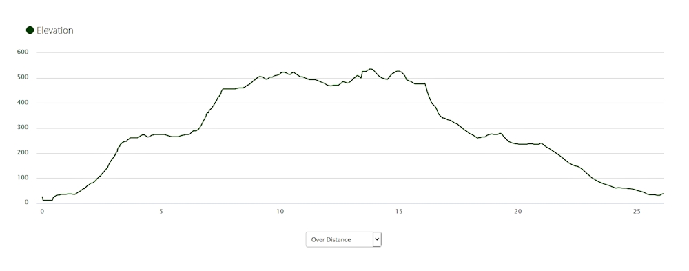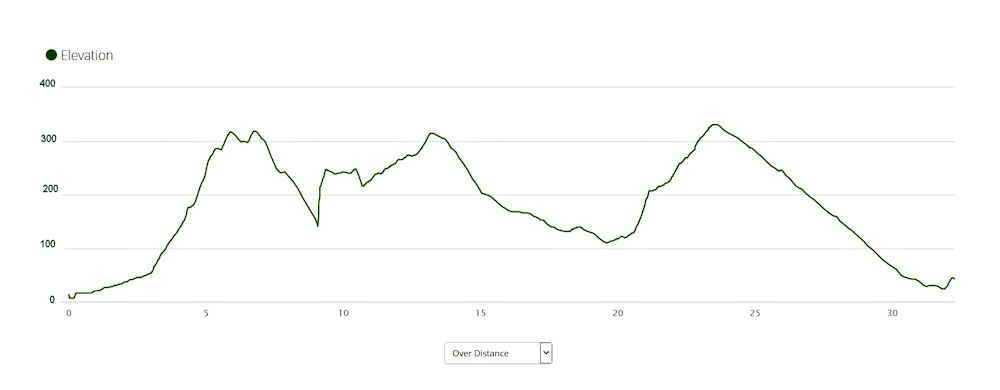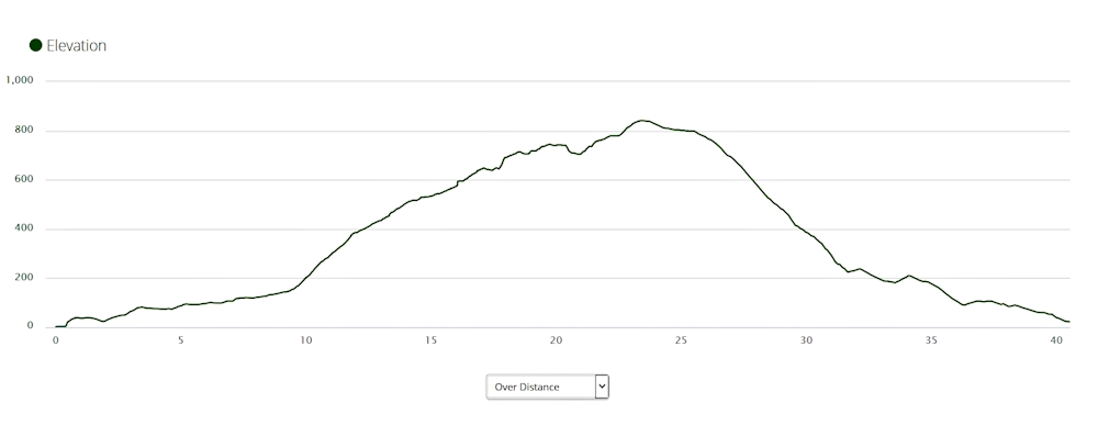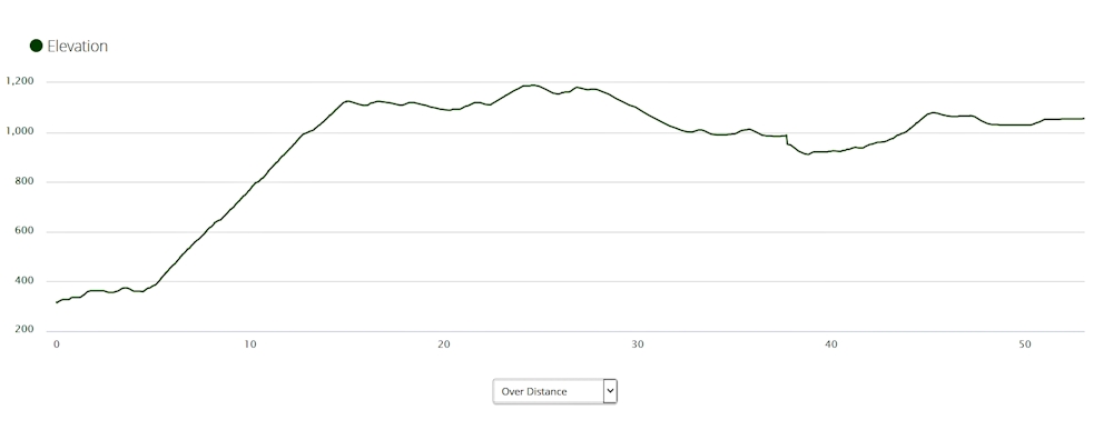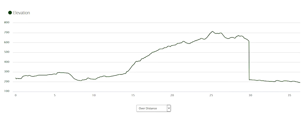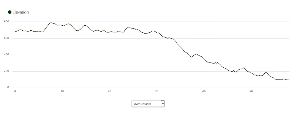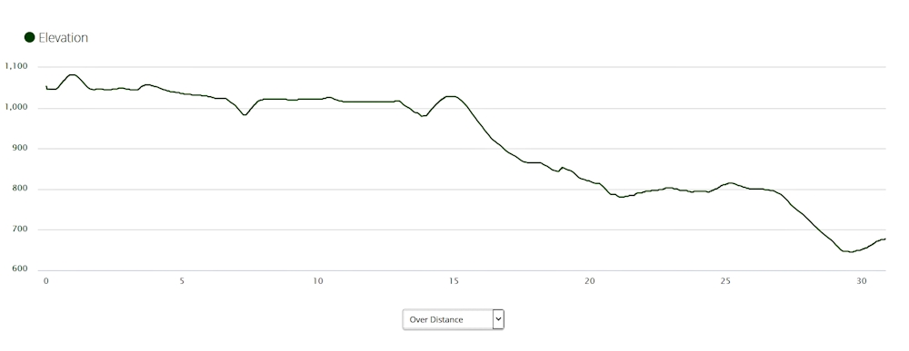 At the top of the climb, there were still 9kms to go to the end, fortunately mostly downhill. This was the final reward for all the undulations of the previous 23kms.