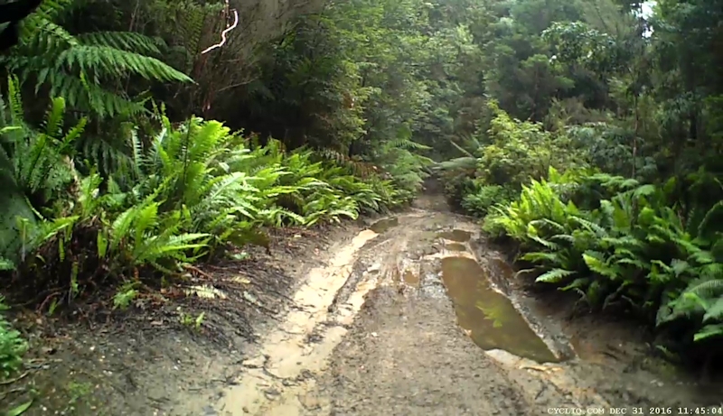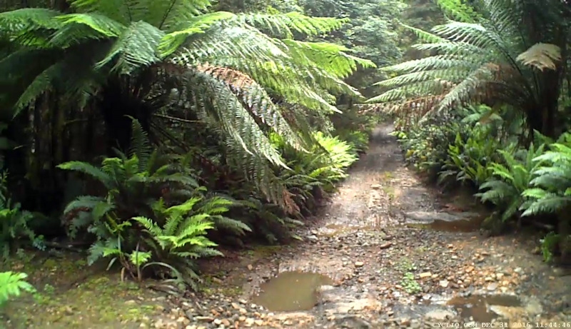 The hairpin junction that marked the start of the Myrtle Creek Road brought a change from a wider road to a narrow bush track that quickly degenerated into a hair-raising descent over loose rock, tree branches and areas of bog.