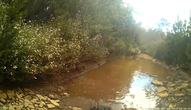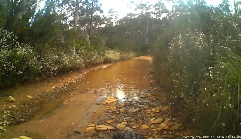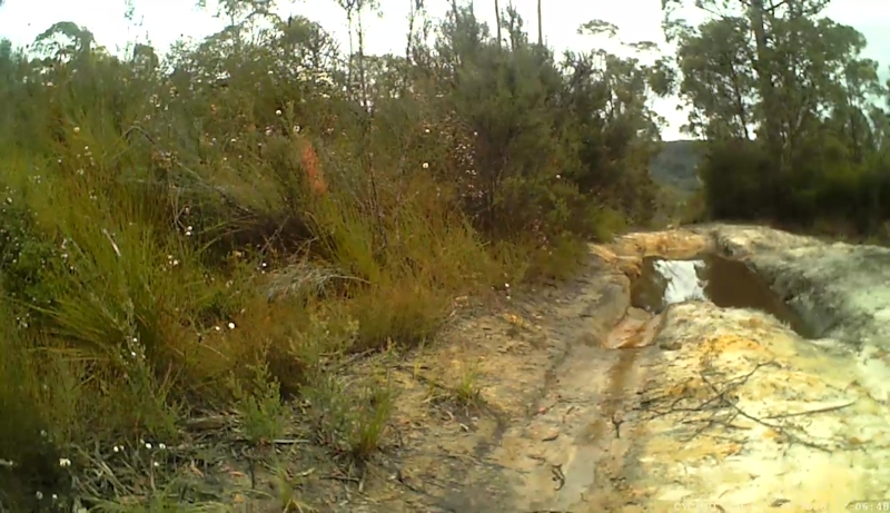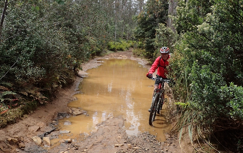 It was more of the same until we reached the turn-off to the White Timber Trail at about 2.20pm. On this track there were no deep water-filled ruts but at various points water did completely cover the track. At first we made our way carefully along the sides but, when we realised the pools were reasonably shallow, we rode through them. The rocky bases gave me some cause for concern and there was an element of luck whether we avoided hidden rocks or not.