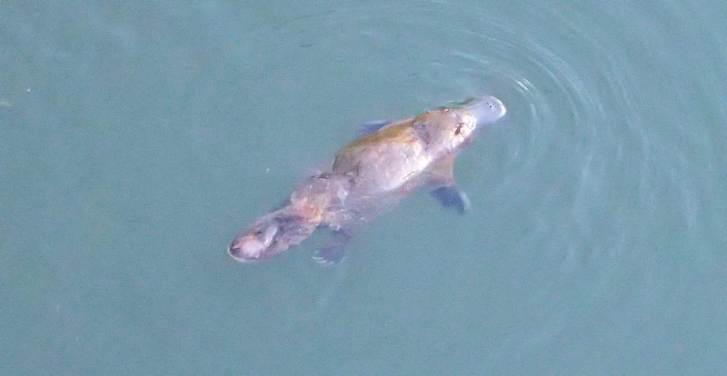 At around dusk we wandered on to the footbridge to see if we could spy any platypus that might happen to be frolicking in the Meander River. It wasn't long before we were rewarded with several surfacing animals. I was surprised at the size of them - probably almost a metre long. We took some videos of them but the results were not very satisfactory, considering the distance from the water and sun glare that complicated our efforts. I think Matthew achieved better results than I was able to.