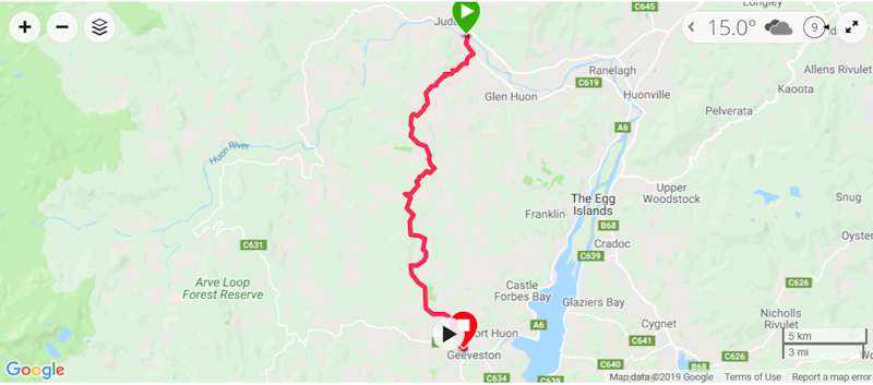 So ended another successful day out on the Tasmanian Trail, with only one leg remaining - from Geeveston to Dover.