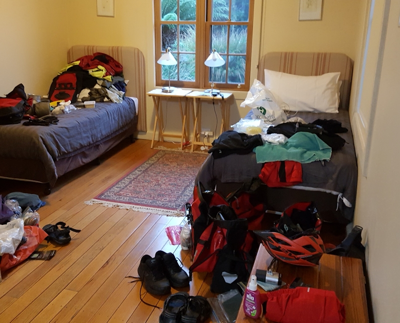 We woke to the sound of rain on the roof. Matthew checked the radar pattern for Western Tasmania's rain and it showed we were at the edge of a rain band that was moving SE. We decided to wait a couple of hours in the hope the rain might have passed in the intervening time. We packed slowly in the confined space of the room and by 9.55am, when the rain had stopped, we rode along to the local takeaway shop for some supplies for the trip.