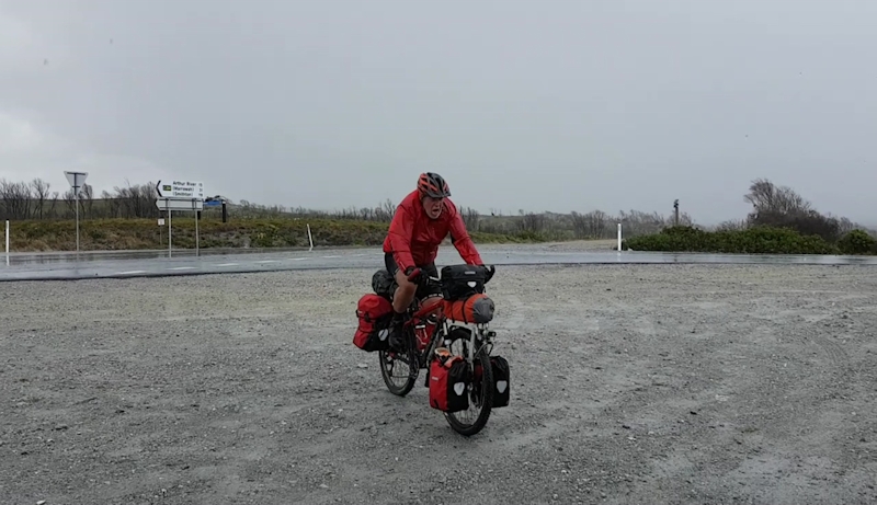 At about 300m from the Couta Rocks junction, while I was enjoying the wonderful coast views, despite the head wind, an intense band of rain confronted us, driven by a gale-force westerly head wind.