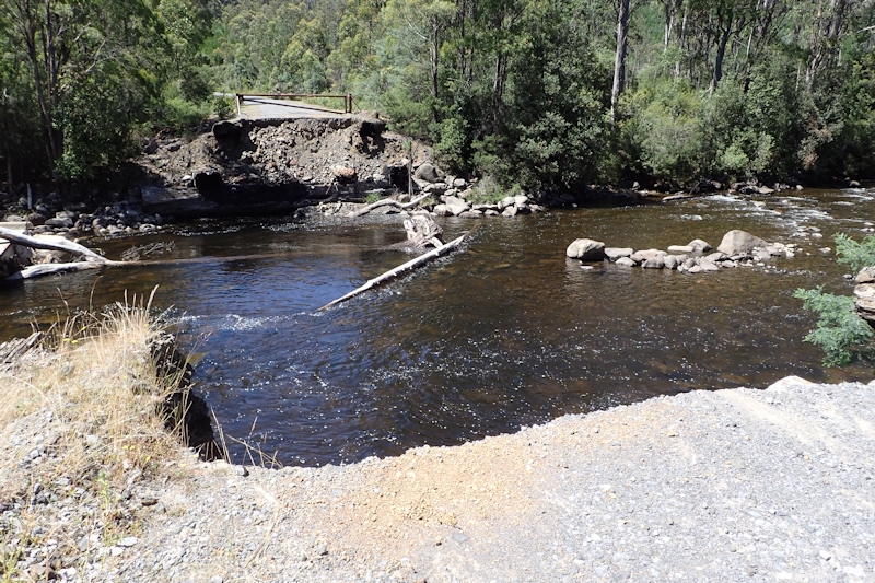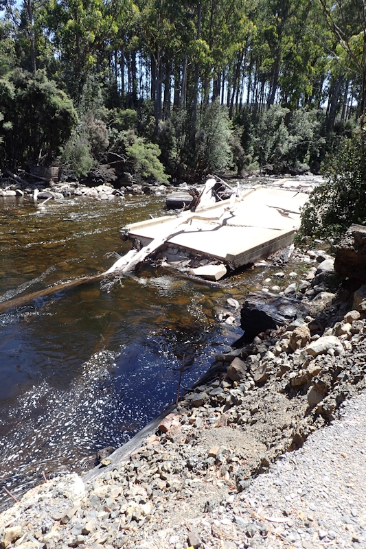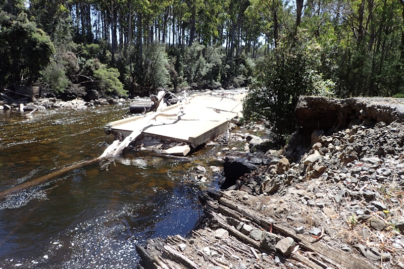 About two weeks prior to our planned departure Matthew learned that the bridge over the Florentine River, about 7kms south of Wayatinah, had been destroyed by vandals in June 2016 and was no longer there.