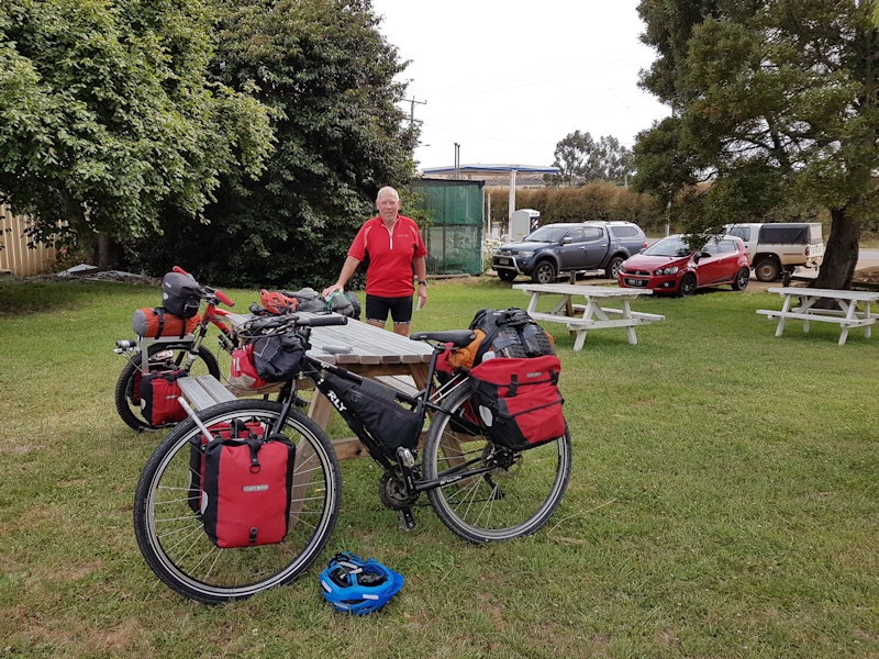 We enjoyed a good run for the first 20kms to Bushy Park, where we stopped for a toasted sandwich and a drink before continuing to our next stop at Westerway. There were several challenging hilly sections to cope with, but no need to get off our bikes to push them. We both knew there would be ample opportunities to test our walking legs in the days to come.