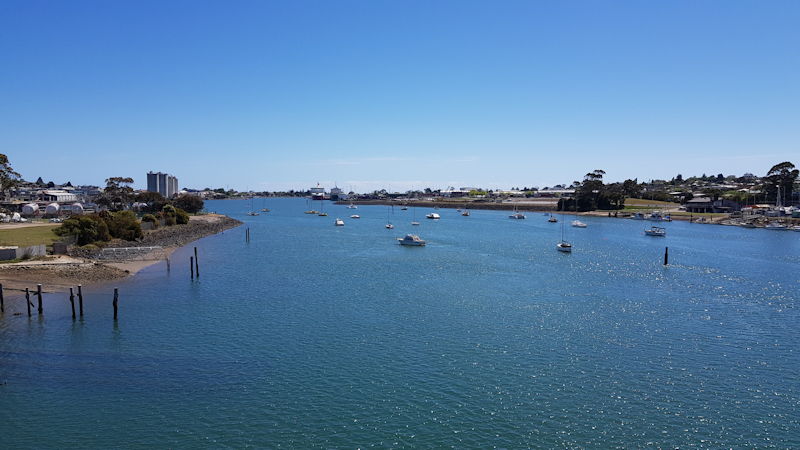 From there we made our way down to Devonport shops, where Matthew bought us some sandwiches for breakfast and I was able to buy another spare inner tube. We then made our way down to the wharf area where we rode along a bike track until we rejoined the Bass Highway.