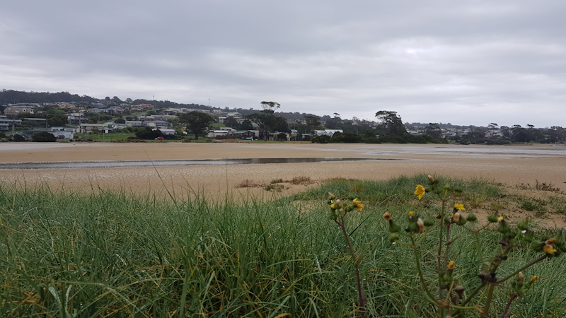 It didn't take us long to become accustomed to the peculiar motion of our bikes as we plodded up the hill towards the Bass Highway. We turned left (east) and immediately felt the benefit of a 20kms/hr tail wind. This made for a very pleasant ride, even though the hard shoulder - our bike lane - was no wider than about 500mm for most of the time.