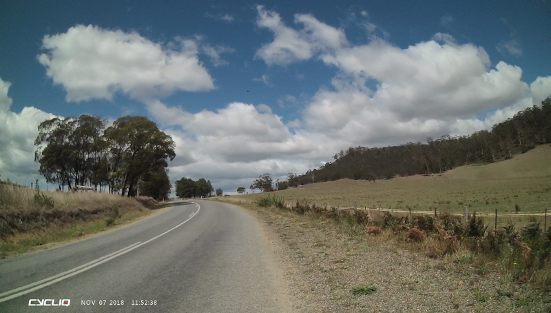 After a comfortable stay at the Bridge Hotel we left Smithton at about 9.40am, in cool sunny conditions, with fully laden bikes. For me, the hill away from Smithton was an early test but I knew we were going to face much tougher hills later.
