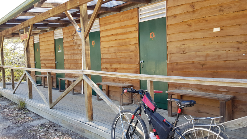 We were surprised to see that in the camp kitchen the toaster and electric jug had been hard-wired into the wall, just like an off-peak heater would be. This was clearly an effort to dissuade campers from using the power points to recharge mobile phones and other electronic devices. This seemed to us to be a rather petty penny-pinching plan and might eventually come back to bite the management and be expensive when a toaster or jug needed to be replaced. We were able to use our fully-charged battery packs to recharge our phones and my Fly6 camera, Fly12 camera and both of our Garmin GPS units.