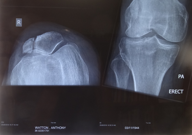 As a result, we initially planned this ride to take place in April 2018 but, following a bike fall in March 2018 in which I suffered a vertical split in my right patella and injured my right wrist and elbow, that ride never happened. The view on the left side of the xray image is from a vertical position. The surgeon said the gap was being filled by scar tissue and he did not operate.
