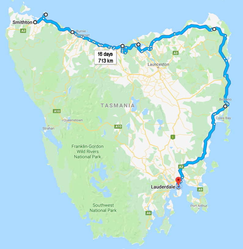 This ride came about after Matthew and I completed a bike ride from Lauderdale to Smithton back in January/February 2017 (Ride from Lauderdale to Smithton). When we had reached Smithton I said to Matthew: "Well, that's the first half done. We now need to finish it off by riding the North and East Coasts."