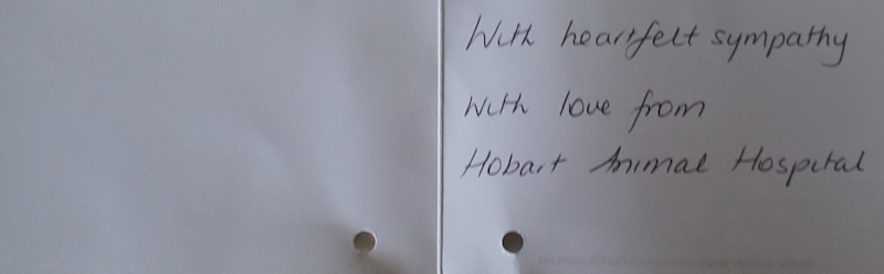 A second surprise - a lovely card, also from the vet staff arrived today, Thursday 20/8/20.