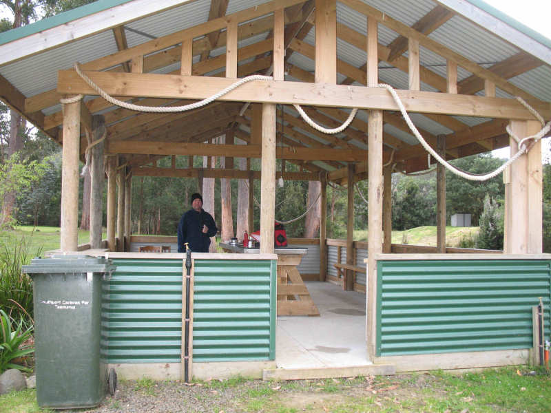 When we left Dover just after 2pm we soon discovered that the road climbed steadily for quite a few kilometres before it peaked prior to the exhilarating run down to the Southport turnoff and then to the Camping Grounds/Caravan Park by 3.15pm. I thought $24 for a powered site was a bit steep but we were both able to pitch our tents on the one grassy site so, at $12 each, it wasn't too bad a deal. [We needed a powered site so that we could charge our phones and my GPS/bike computer.] There was a comfortable camp kitchen, hot showers and hardly any other visitors, so what more could we ask?