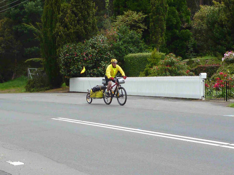 Even though the road undulated, the hills were fairly short so I had no trouble coping on this section. However, I did need to take extra care on the loose gravel as I did not want the trailer to jack-knife as I had read sometimes happens when braking hard on a bend, for instance. The front wheel of my bike, being lighter, wanted to skid off to a side whenever it hit a rock or even a stone. Intense concentration was needed to avoid a fall.