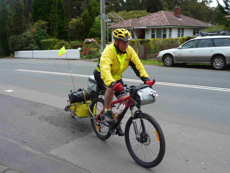 Looking back on this trip, I am convinced I made a huge mistake in changing from a bike with panniers to a bike and trailer arrangement. The trailer, although well made and with no mechanical problems, behaved like a bad-tempered child when on any surface that was not a smooth, level or down-sloping bitumen road. In particular, gravel surfaces were very difficult to negotiate as the front wheel was very light, all the weight being at the back of the bike. I resolved to attempt to fit good quality racks (Tubus stainless steel) and panniers (Ortlieb waterproof) to my bike for any future trips I may make. Not easy with front suspension and disc brakes apparently. [I have since fitted the pannier racks - see photos at 1 Day Bike Ride to Dunalley but have yet (as at 1/4/12) to use them on the road.]