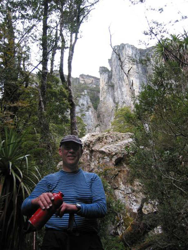 7.30am saw us starting up the well-constructed steep track, with good visibility in the immediate area (50m visibility) but zero to any of the surrounding peaks. At one point we took a false “track” by not following a poorly painted arrow correctly at the junction of the Irenabyss track. It had been well trodden by other previous walkers. At this sign we should have climbed up the rock face behind the sign but instead we went left and would have ended up with a 70m cliff to negotiate.