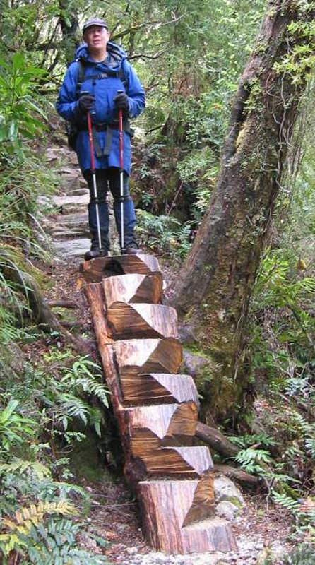 Today’s walk was in reasonable weather but much cloud prevented us from seeing any views of local peaks. There was a very steep climb up to Barron Pass but the track work that has been done by Parks and Wildlife is really amazing – first rate steps, benching and carved tree trunks up and down extra steep sections.
