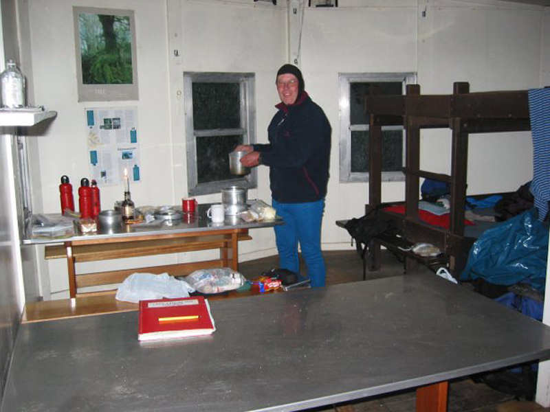 They made us welcome and when we had changed and unpacked our sleeping bags, we cooked a packet pasta with sour cream and chives, chilli salmon and cashew nuts. Very tasty if slightly unusual. We washed it down with a cup of hot chocolate.